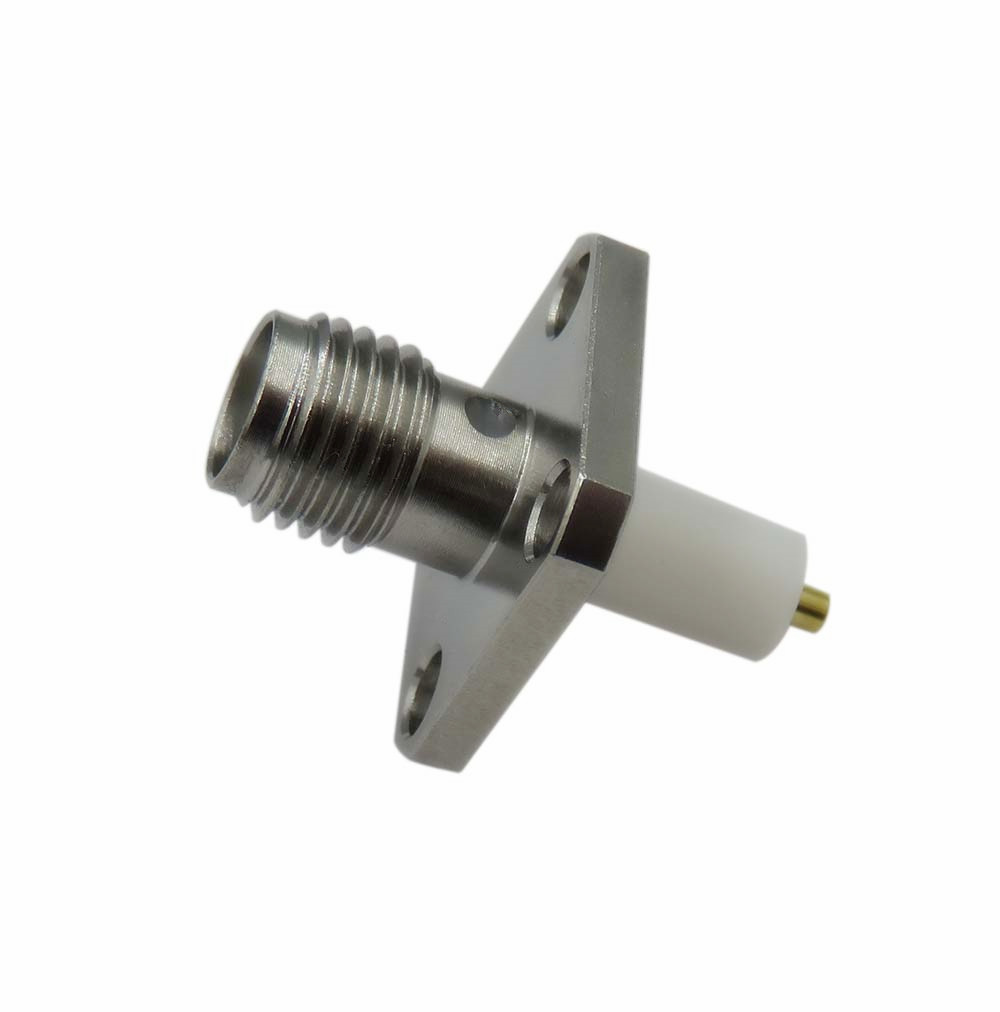 High Frequency 18GHz Stainless Steel SMA Female 4 Holes Flange Mount Connector With Extended Insulator And Pin
